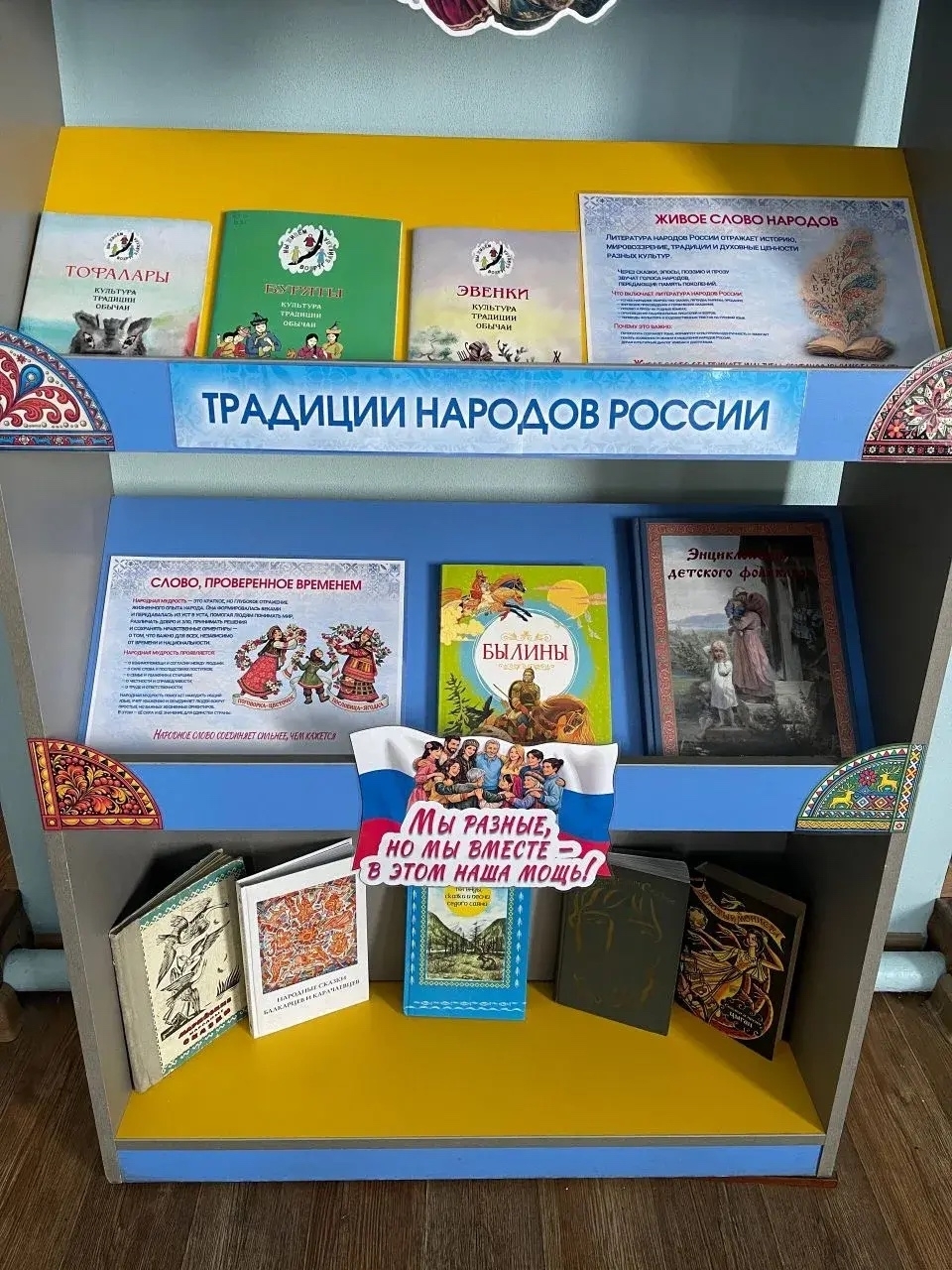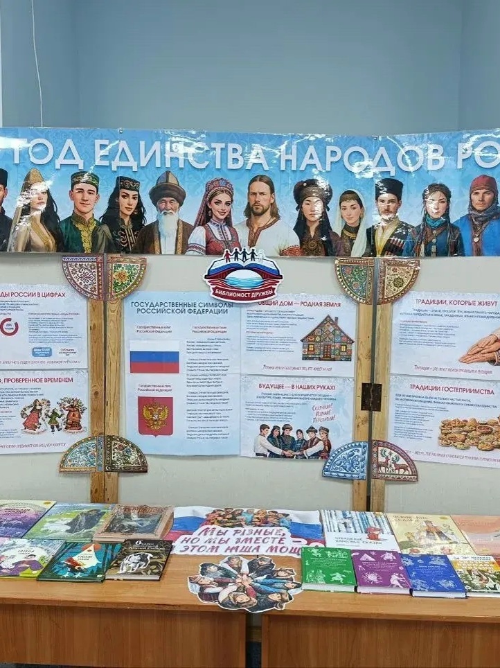 Первым значимым событием стала единая выставка «Сто народов России — одна страна». На своих площадках библиотеки-участницы представили материалы о многообразии культур, традиций, языков и обычаев народов, проживающих на территории нашей страны. Особое внимание уделено ключевому разделу выставки «Народы России: атлас культуры». Для его качественного оформления и содержательной работы с читателями специалистами были подготовлены методические материалы, которые помогли создать целостную и познавательную экспозицию.