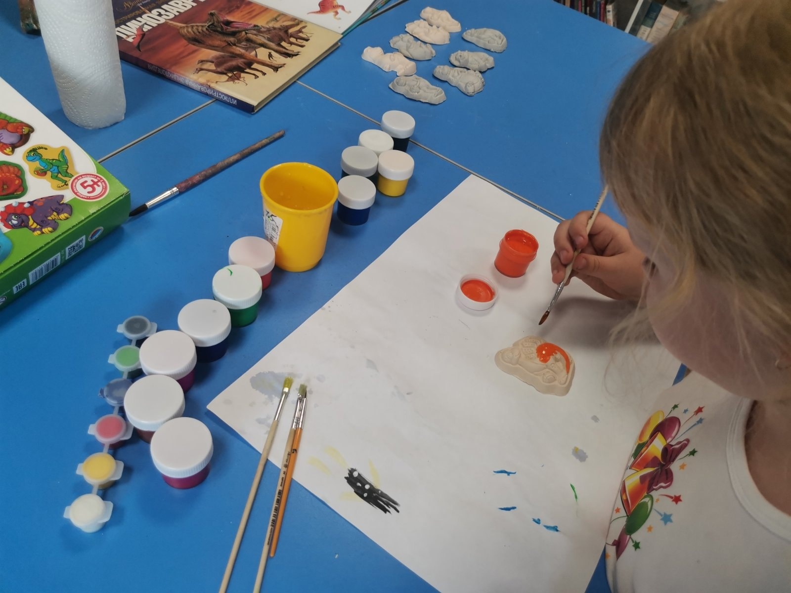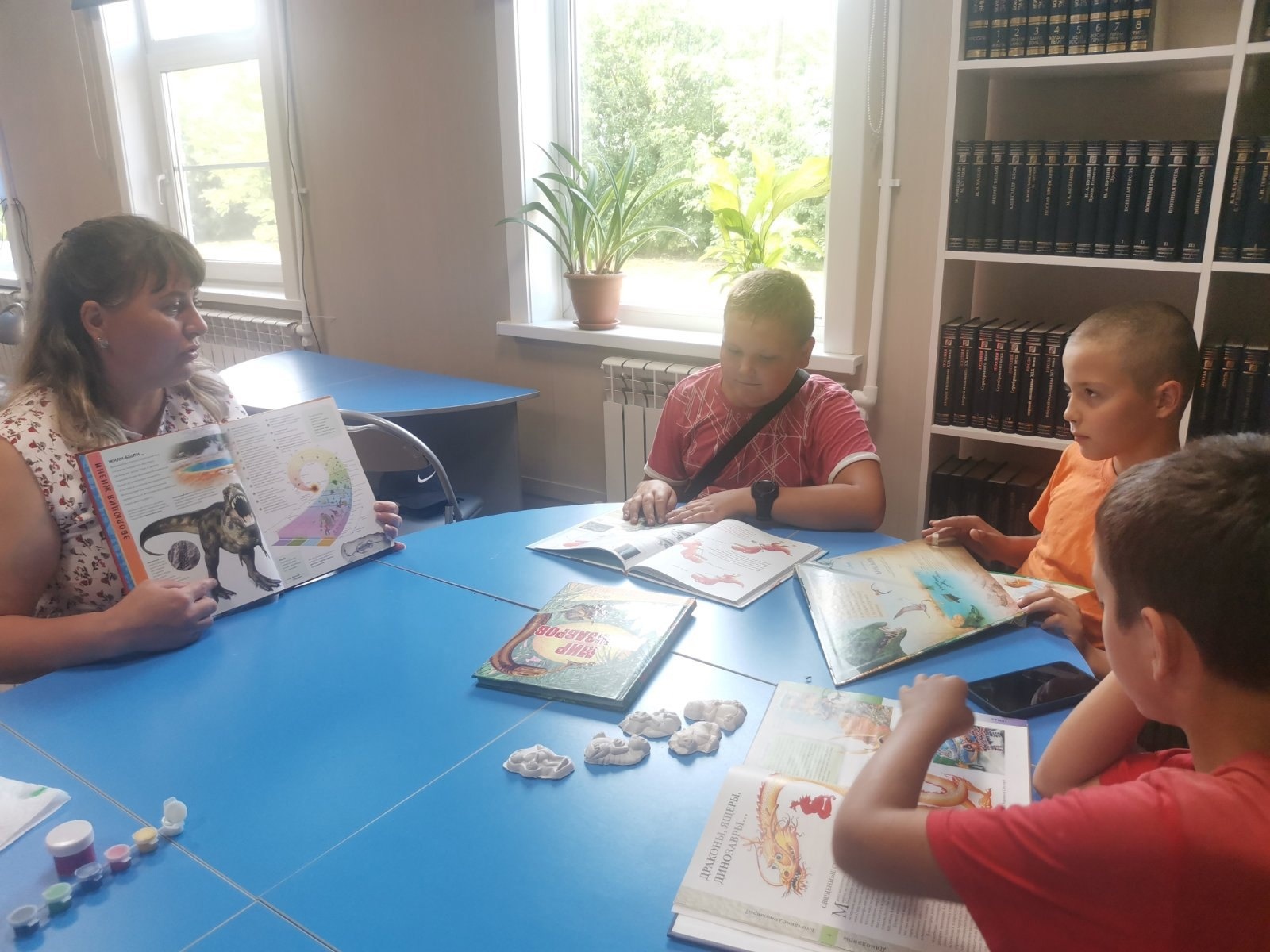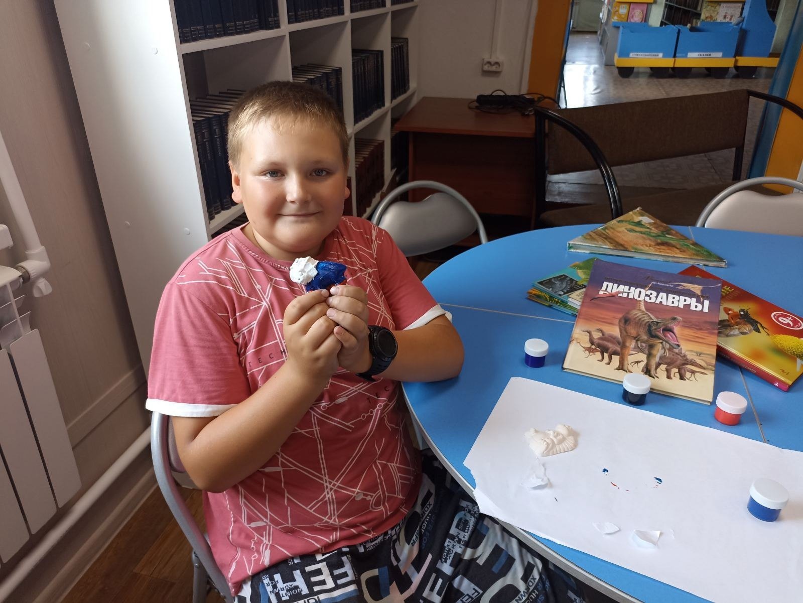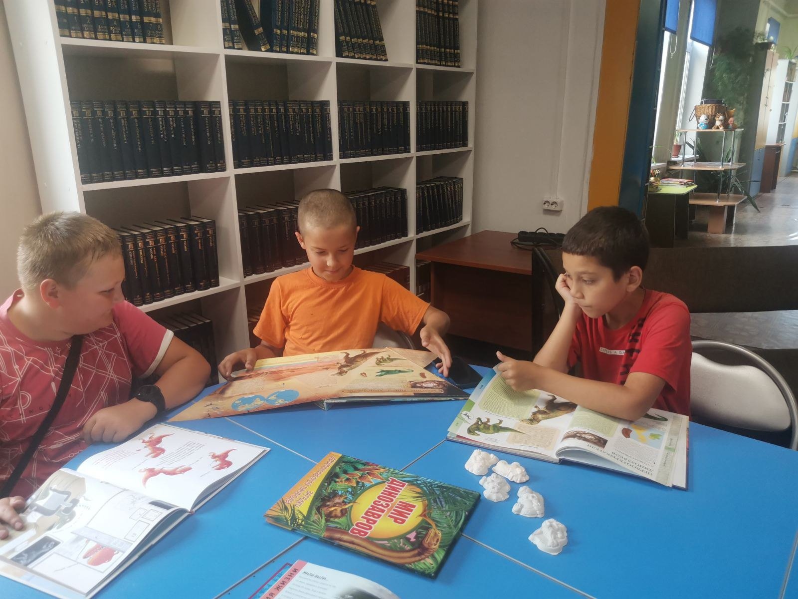 Сегодня в нашей библиотеке прошел познавательный час «В мире энциклопедий». Специалист библиотеки познакомил ребят с видами энциклопедий, с правилами пользования книгой. Ребятам были представлены энциклопедии о динозаврах. После их изучения дети совместно с волонтерами культуры отряда "Ориентир" приступили к практической части: раскрашиванию гипсовых фигурок динозавров.