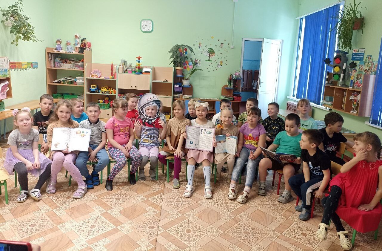 Дети познакомились с историей возникновения праздника, слушали рассказ о Юрии Гагарине и других героях, которые покорили космос, таких как Леонов, Терешкова, Титов и других. Слушали рассказы о знаменитых собаках Белке и Стрелке, которым удалось раньше человека побывать в космосе.