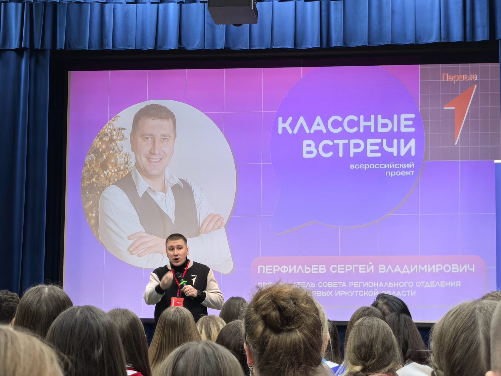 Состоялась классная встреча с председателем совета регионального отделения Движение Первых Иркутской области с Сергеем Перфильевым встреча дала возможность получить актуальную информацию о национальных проектах, которые помогут в развитии детей, молодежи и семей.