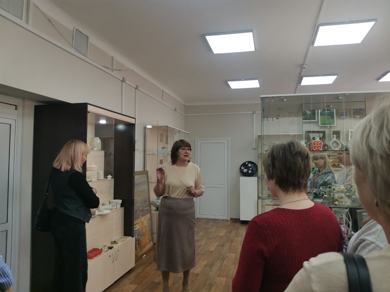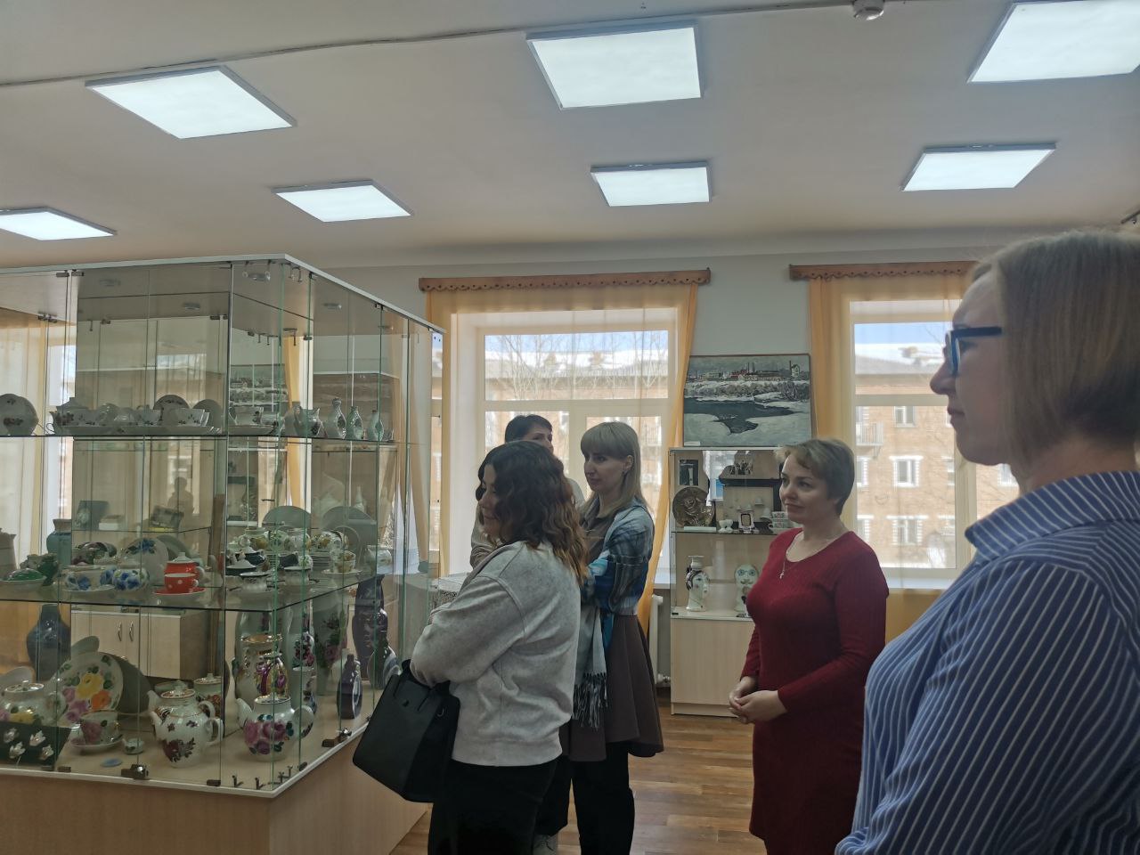 А началось посещение библиотеки с экскурсии в музейную комнату Хайтинского фарфора. Чупрова Елена Витальевна провела обзорную экскурсию, рассказала об истории создания завода, поделилась легендами, связанными с некоторыми экспонатами и провела мастер-класс по декорированию посуды.