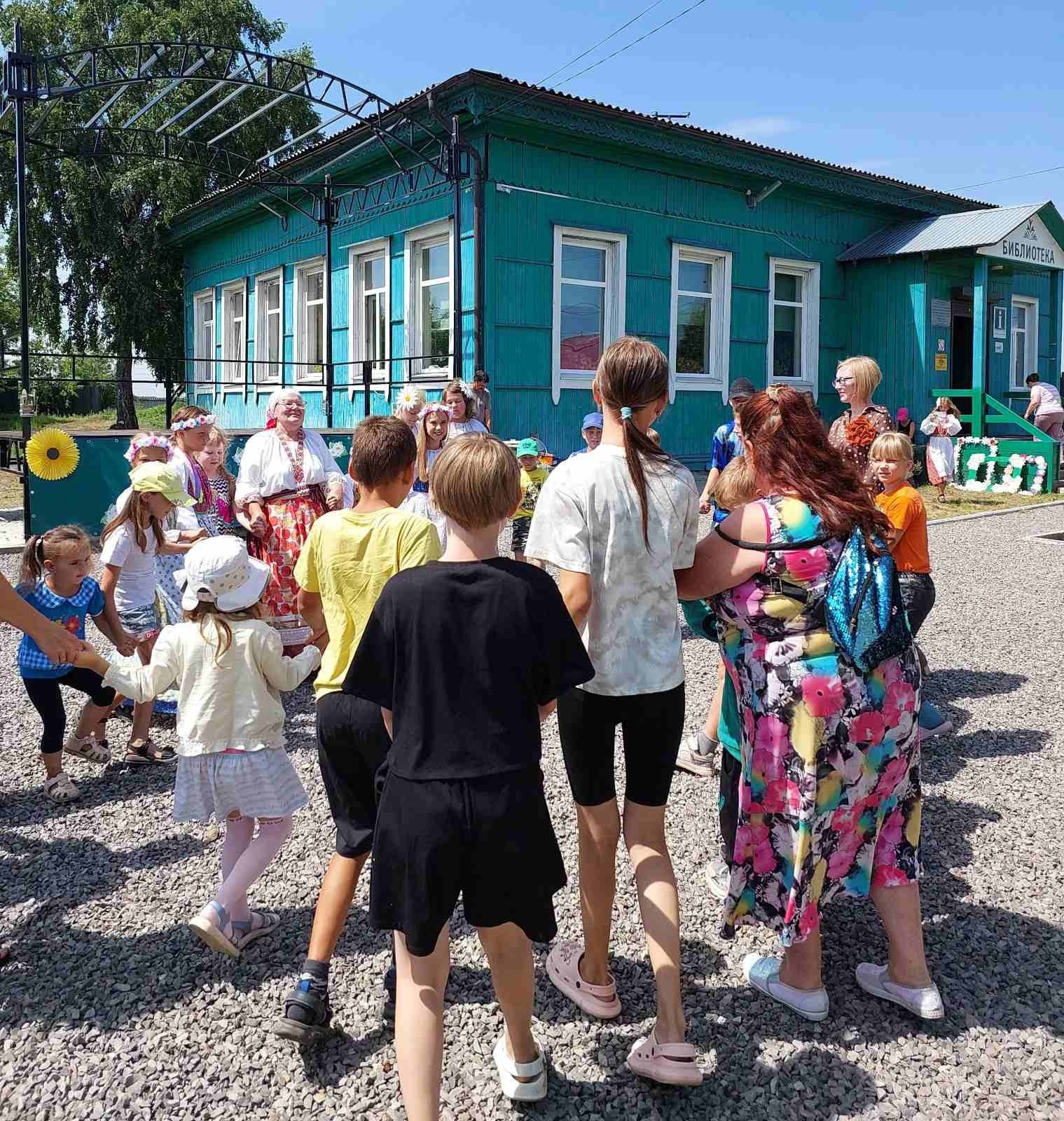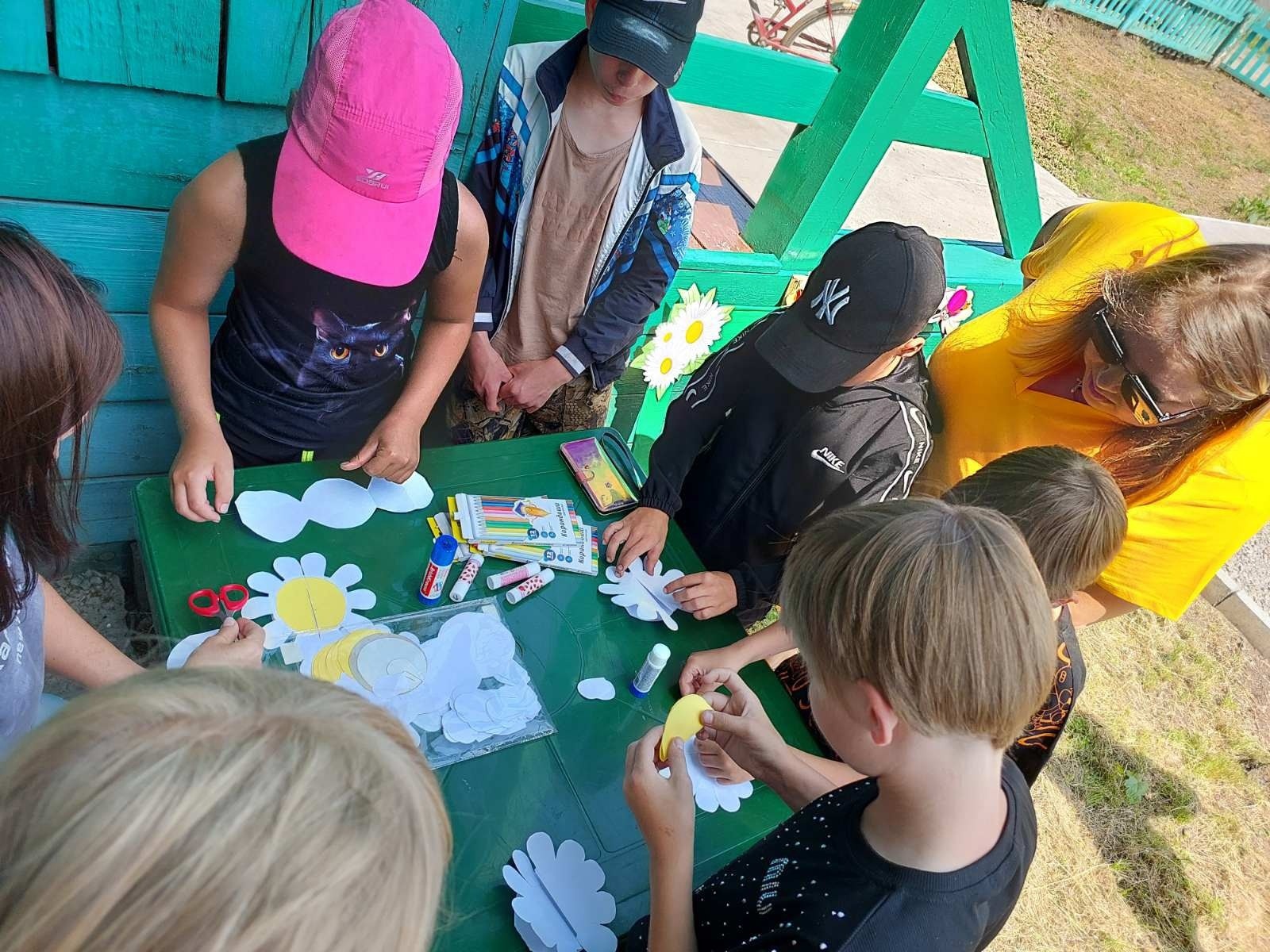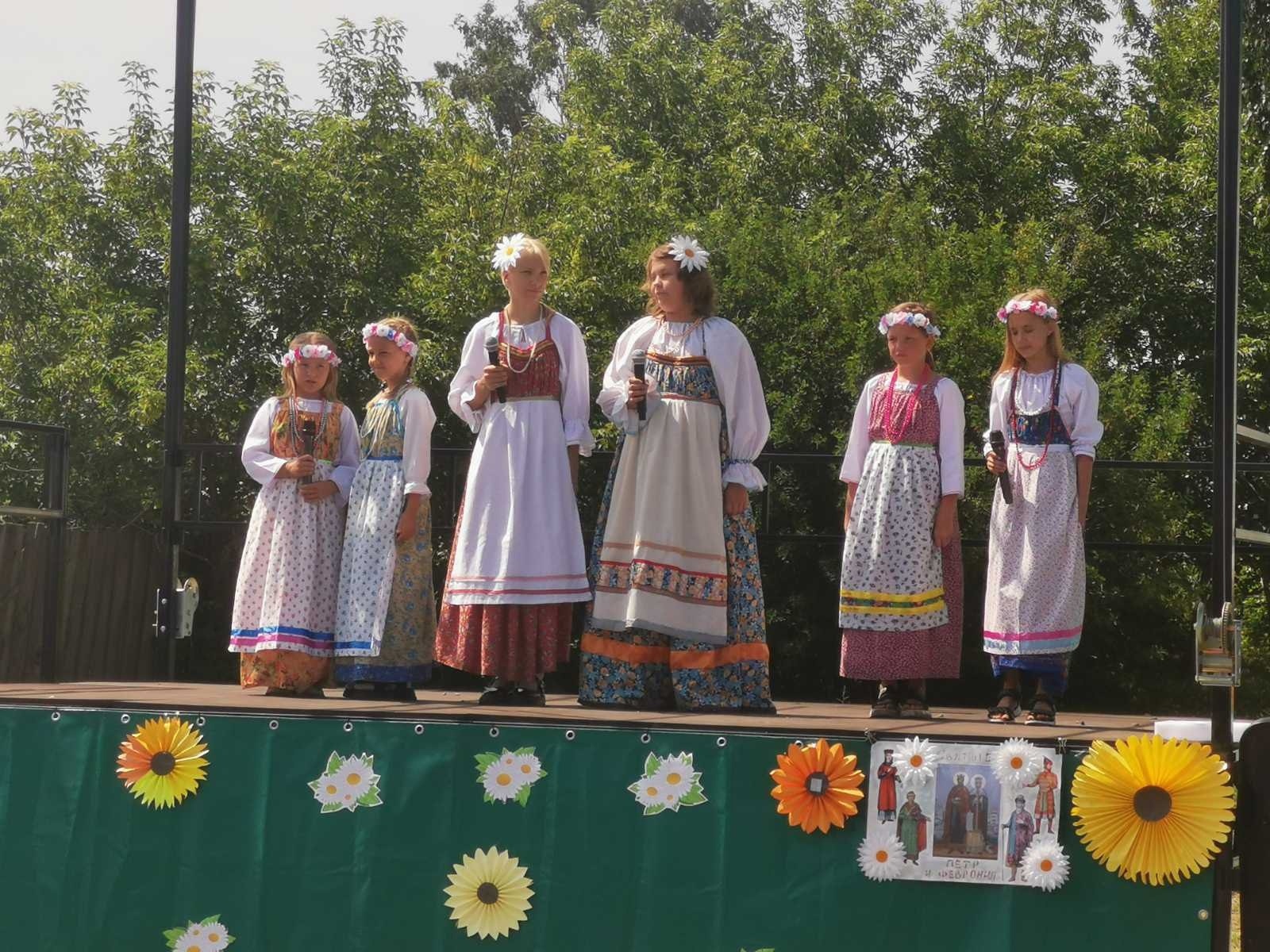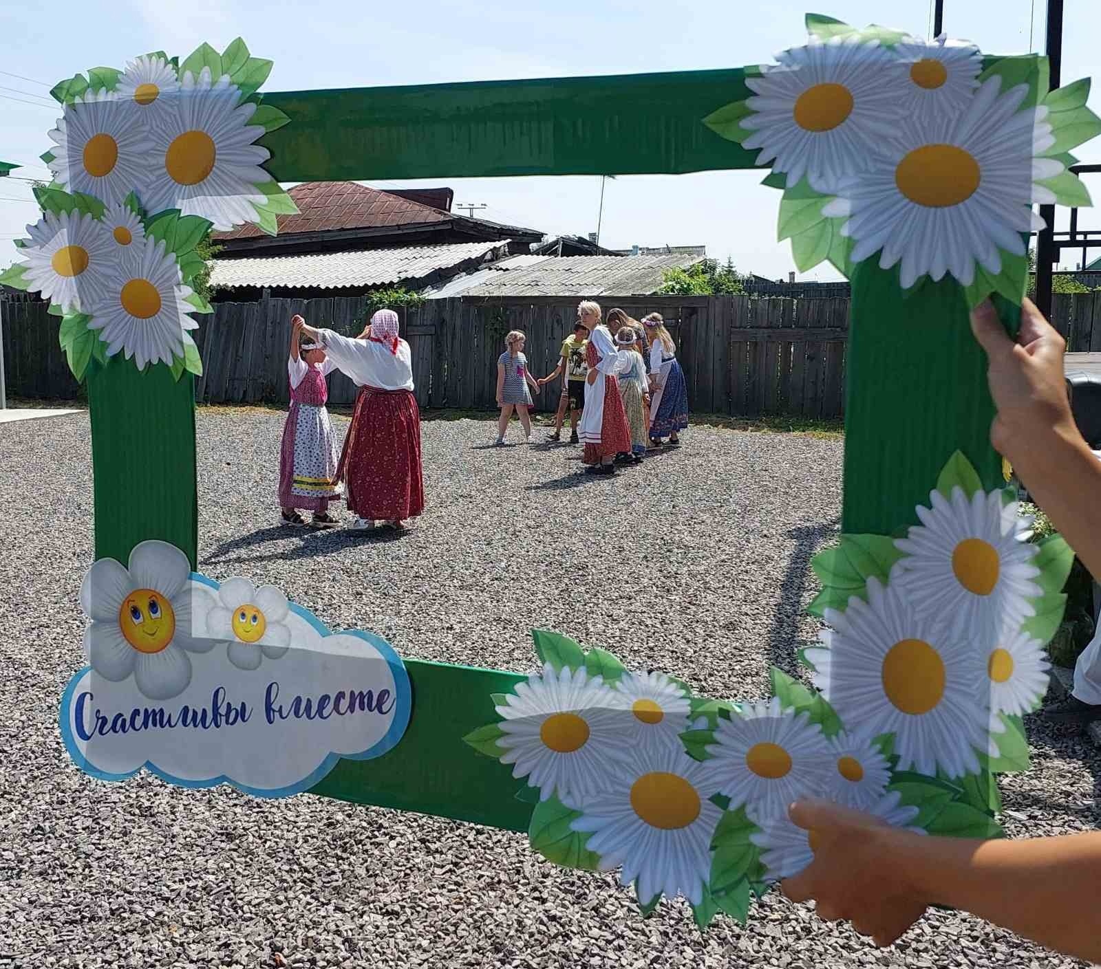 Ребята вместе с родителями участвовали в праздничной программе: водили хоровод, играли в народные игры, пели частушки, делали открытки-ромашки, фотографировались на симпатичной фотозоне.
