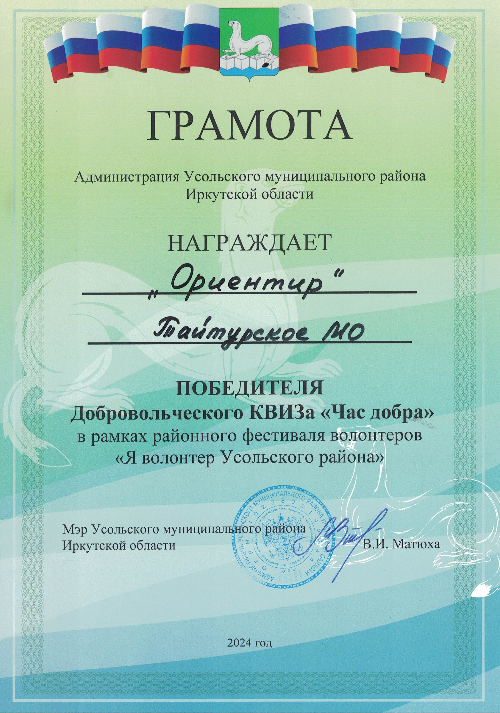 Одержали победу в добровольческом КВИЗе "Час добра" в рамках районного фестиваля волонтеров "Я волонтер Усольского района".
