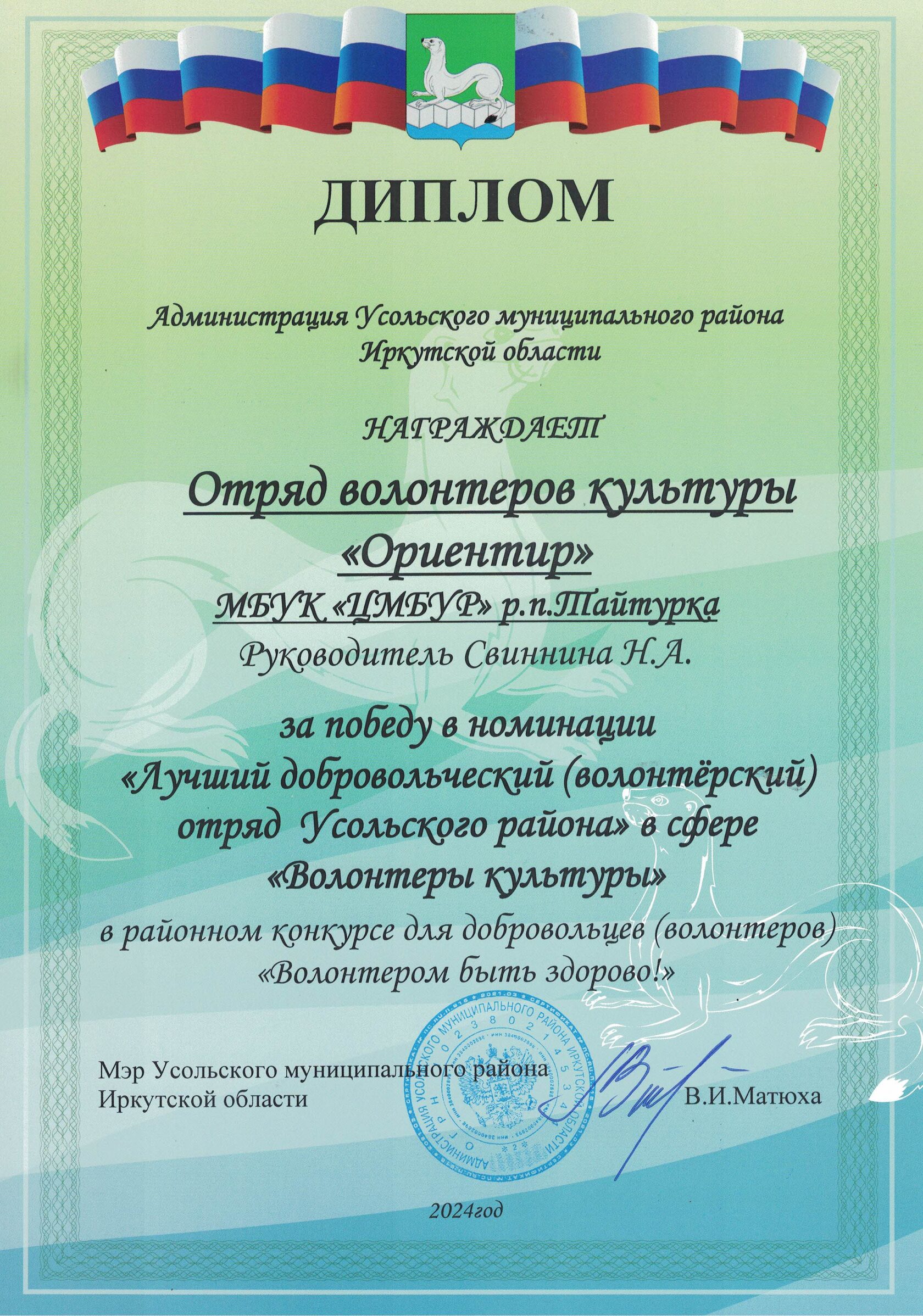 Стали победителями в номинации "Лучший добровольческий (волонтёрский) отряд Усольского района" в сфере "Волонтеры культуры" в районном конкурсе "Волонтером быть здорово!".